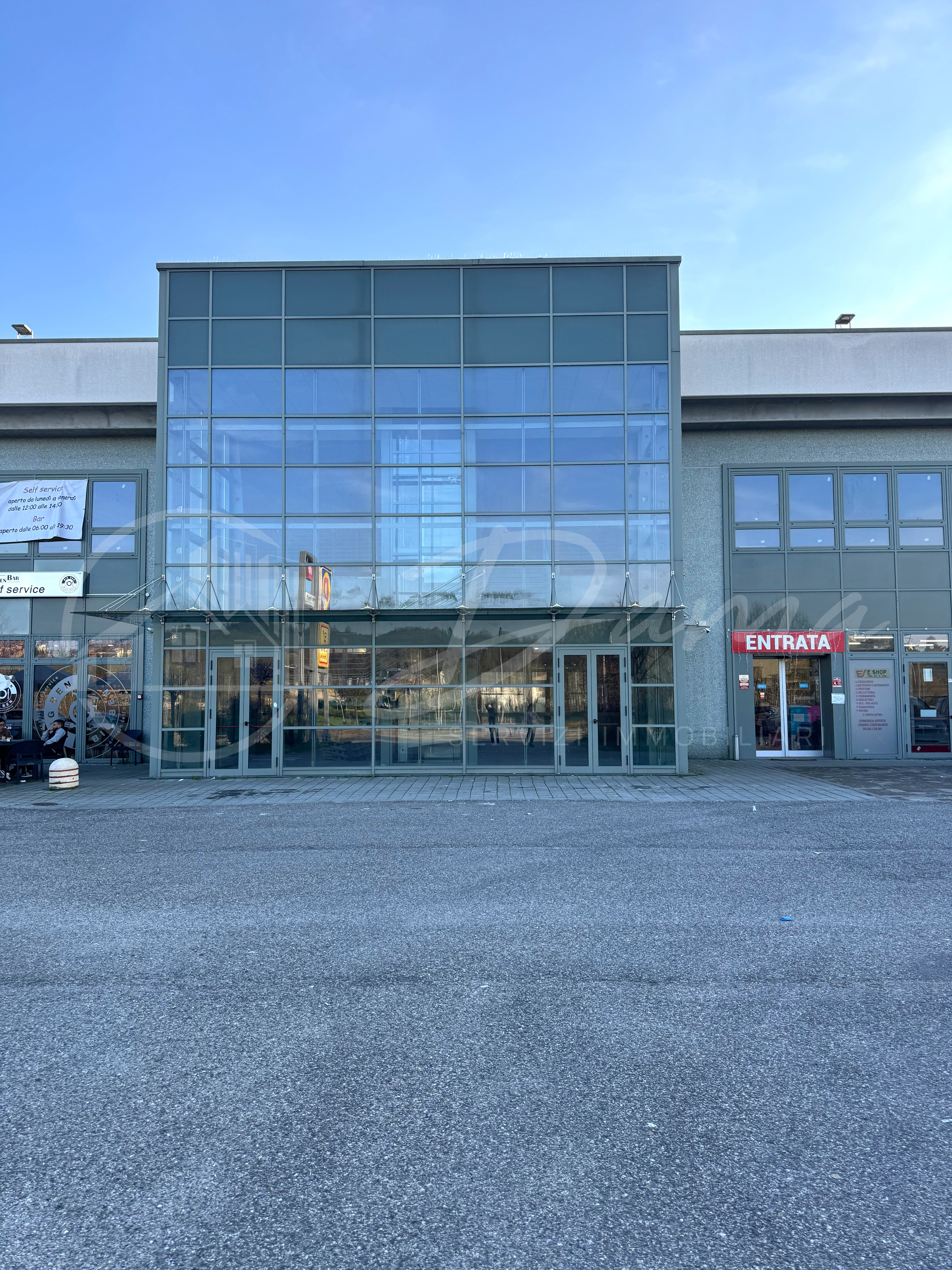 Situato al primo piano di un complesso moderno, l'immobile si distingue per la sua eccezionale luminosità e per un design architettonico di forte impatto. L'intera facciata principale si estende per circa 107 metri lineari ed è completamente finestrata, offrendo un'eccellente vetrina naturale. La proprietà gode di un doppio affaccio, combinando l'alta visibilità sulla strada statale con la riservatezza del cortile interno.