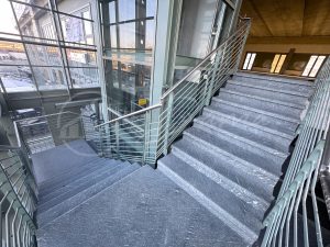 L'accesso alla struttura è servito da un Hub centrale con tre porte di accesso a sensore, ampia scala e un elegante ascensore vetrato, un dettaglio di pregio che conferisce immediata modernità e un'ottima prima impressione alla clientela e ai visitatori.